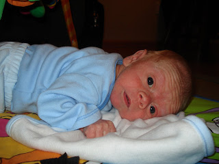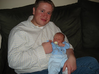 Andrew is doing great! It’s hard to believe that he will be five weeks old tomorrow. At our last Dr. appointment he weighed in at 6 pounds 7.5 ounces. His biliruben level had gone up from 10 to 11.5, so the Dr. had us put him on formula for 24 hours to drop it down again. Once it gets to 7 or 8 and stays there we will be in the clear. If it continues to go up we’ll have to visit a specialist. Tuesday we go back to have it checked again.