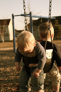 Tonight we had dinner with the Gundry’s and afterwards took a stroll to the park. Jake and Andrew found an abandoned pink jumprope and it was fun to watch them actually play together (even if their form of play was “let’s stick this dirty pink jumprope in our mouths and see if our parents notice”).